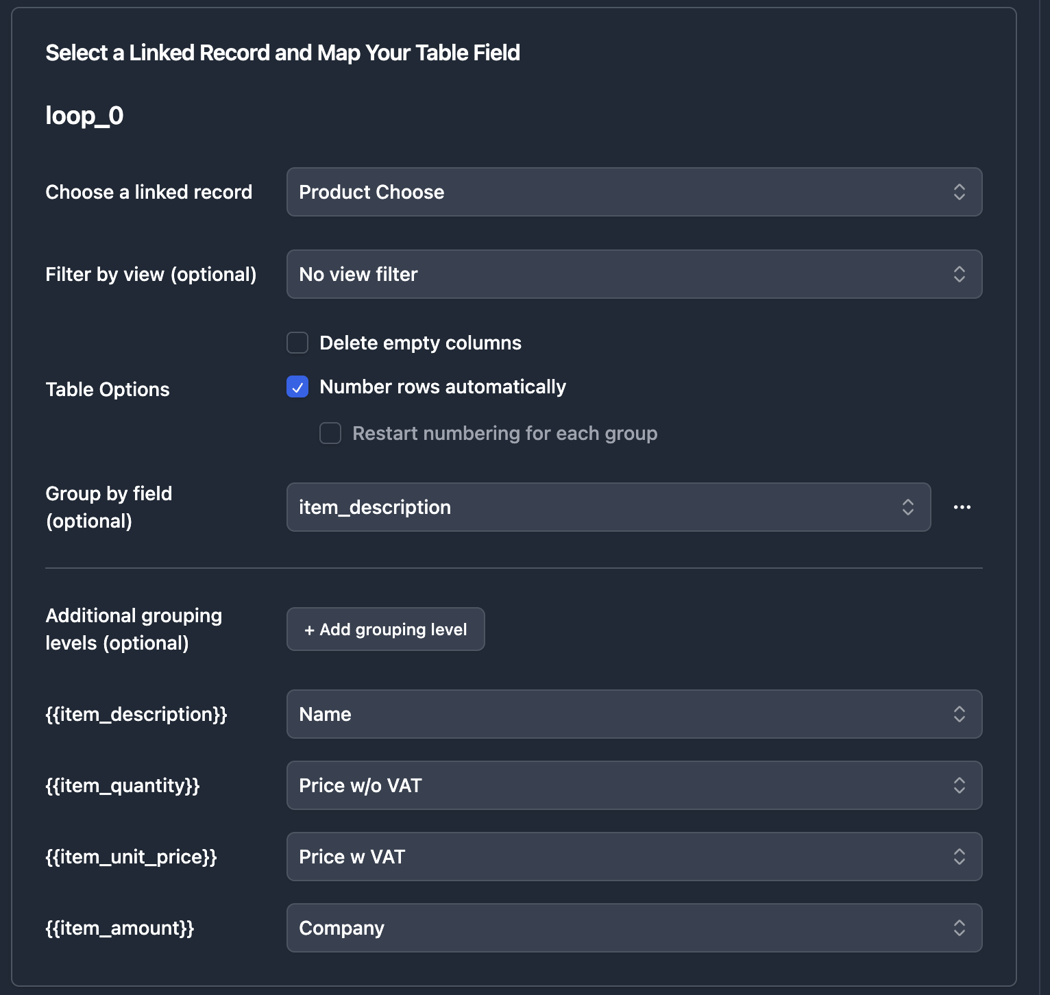 Make sure you've already configured line items in your template using {{loop_0}} or {{nested_0}}.