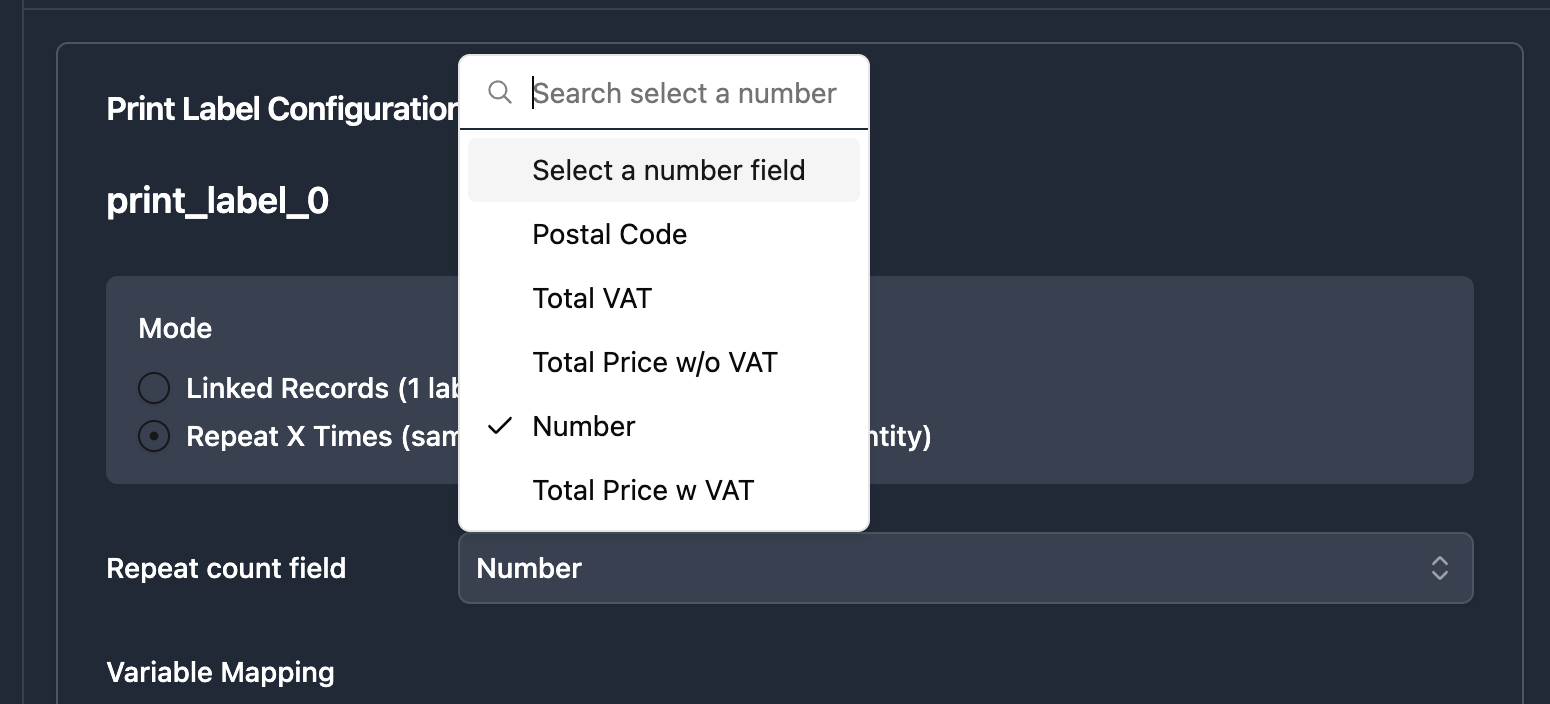 The Solution: Enable "Repeat X Times" mode in Print Labels. TypeFlow reads a number field from your record and duplicates the label that many times.