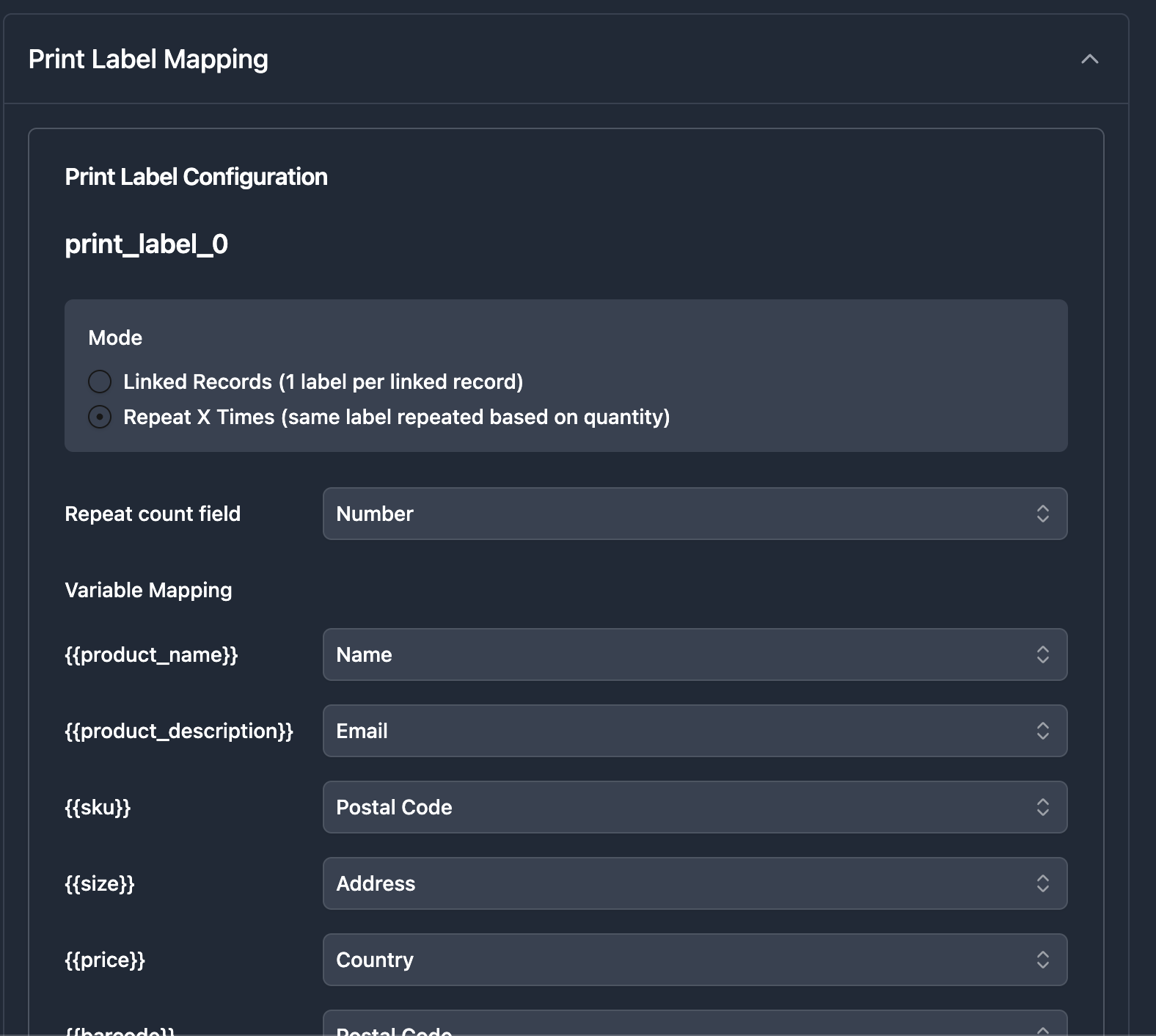 Duplicate the same label multiple times based on a quantity field. Perfect for bulk product labels, inventory tags, and shipping labels.