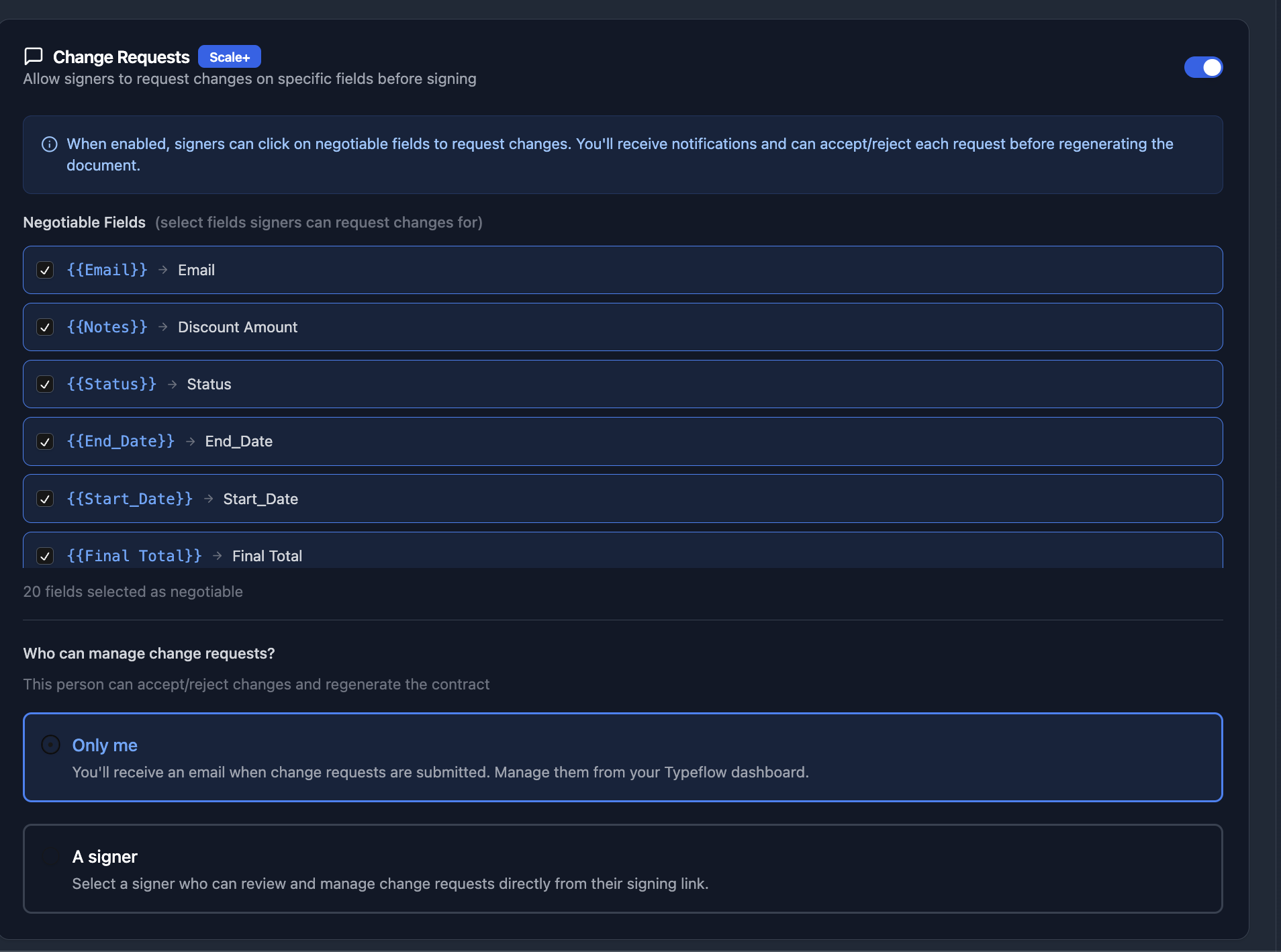 - Choose who manages change requests: you or a specific signer