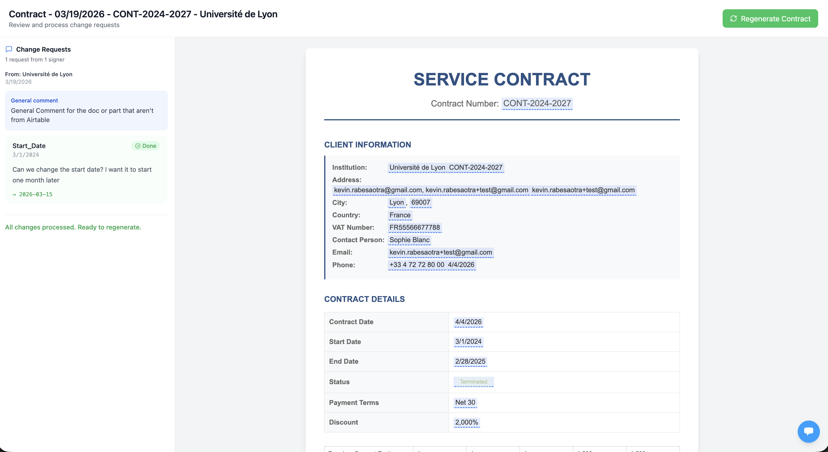 - Click "Regenerate Contract"