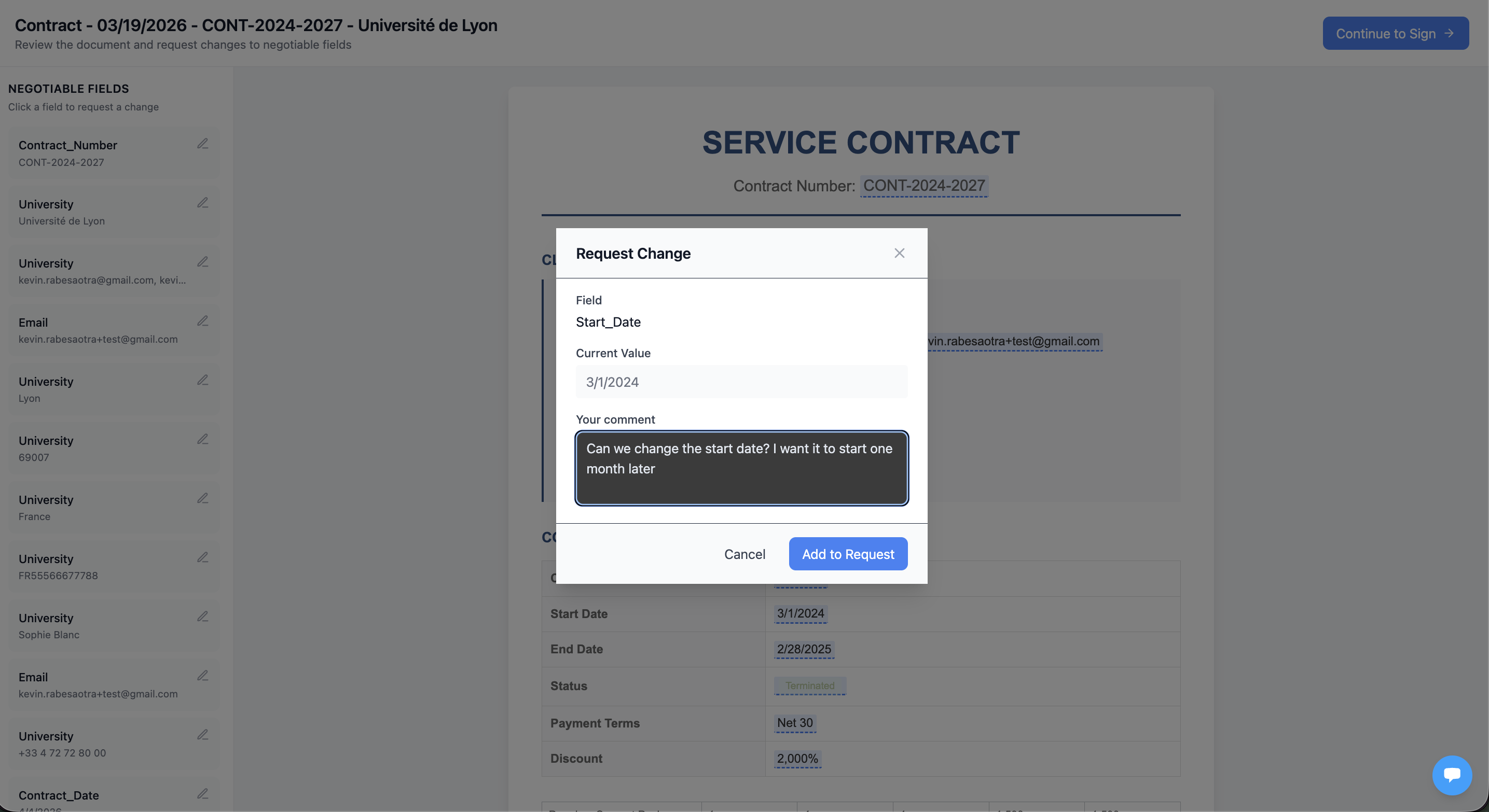 - Select which fields are negotiable (signers can only request changes on these fields)